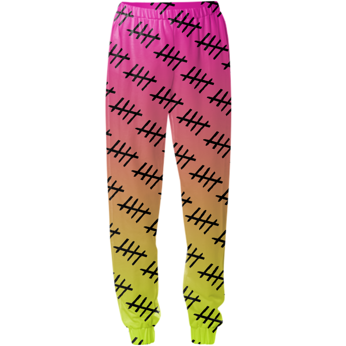 Thin jogger fit sweatpants with drawstring elastic waistband side seam pockets and elastic cuffs.