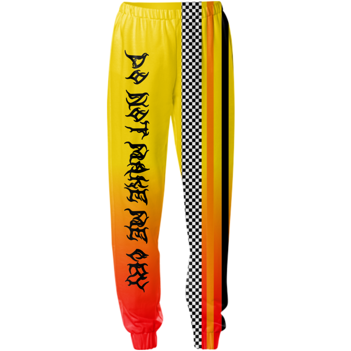Thin jogger fit sweatpants with drawstring elastic waistband side seam pockets and elastic cuffs.