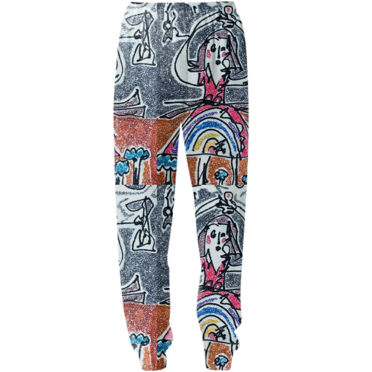 Thin jogger fit sweatpants with drawstring elastic waistband side seam pockets and elastic cuffs.