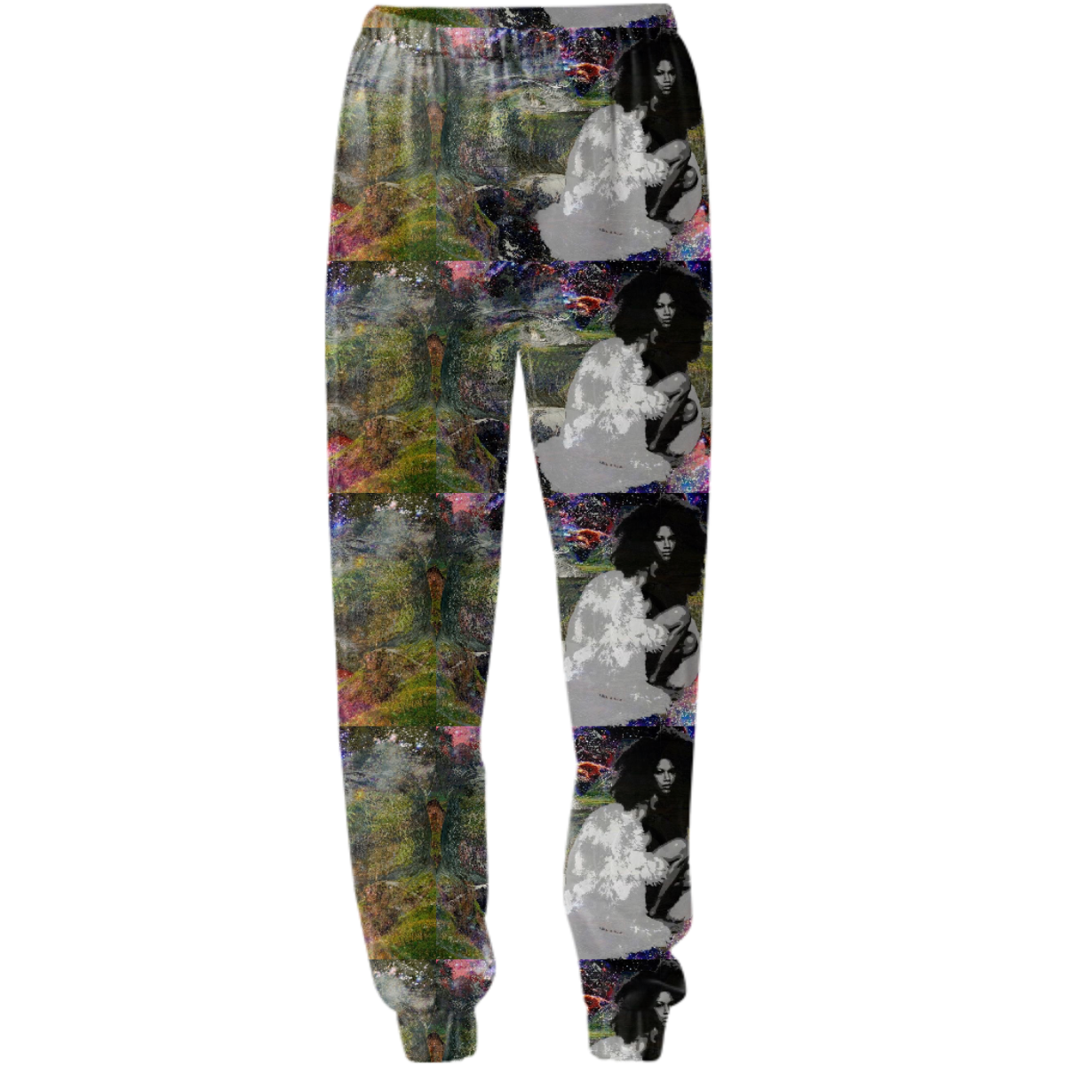 Thin jogger fit sweatpants with drawstring elastic waistband side seam pockets and elastic cuffs.