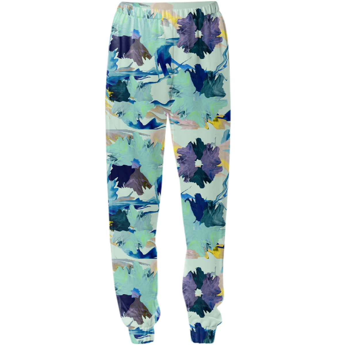 Thin jogger fit sweatpants with drawstring elastic waistband side seam pockets and elastic cuffs.