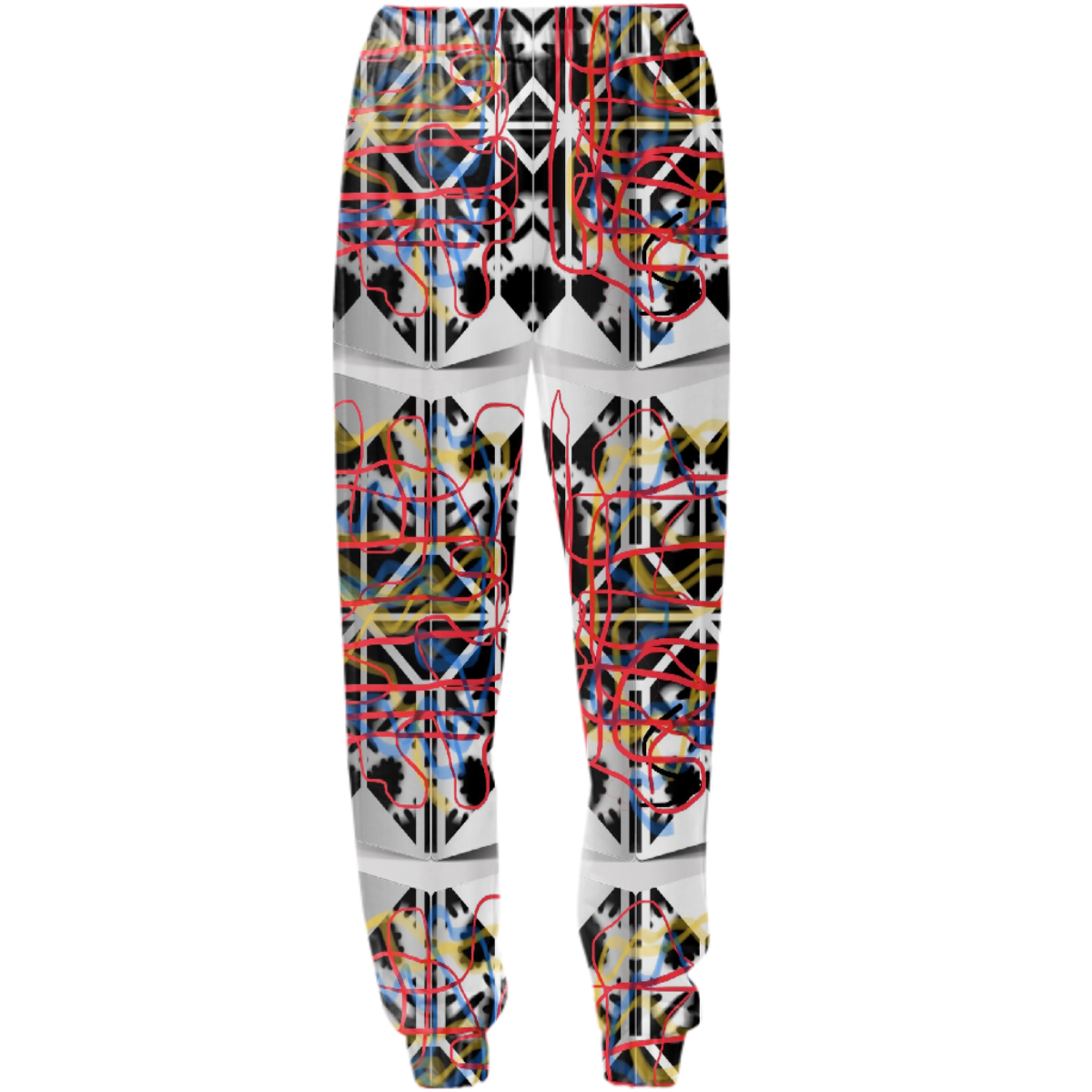 Thin jogger fit sweatpants with drawstring elastic waistband side seam pockets and elastic cuffs.