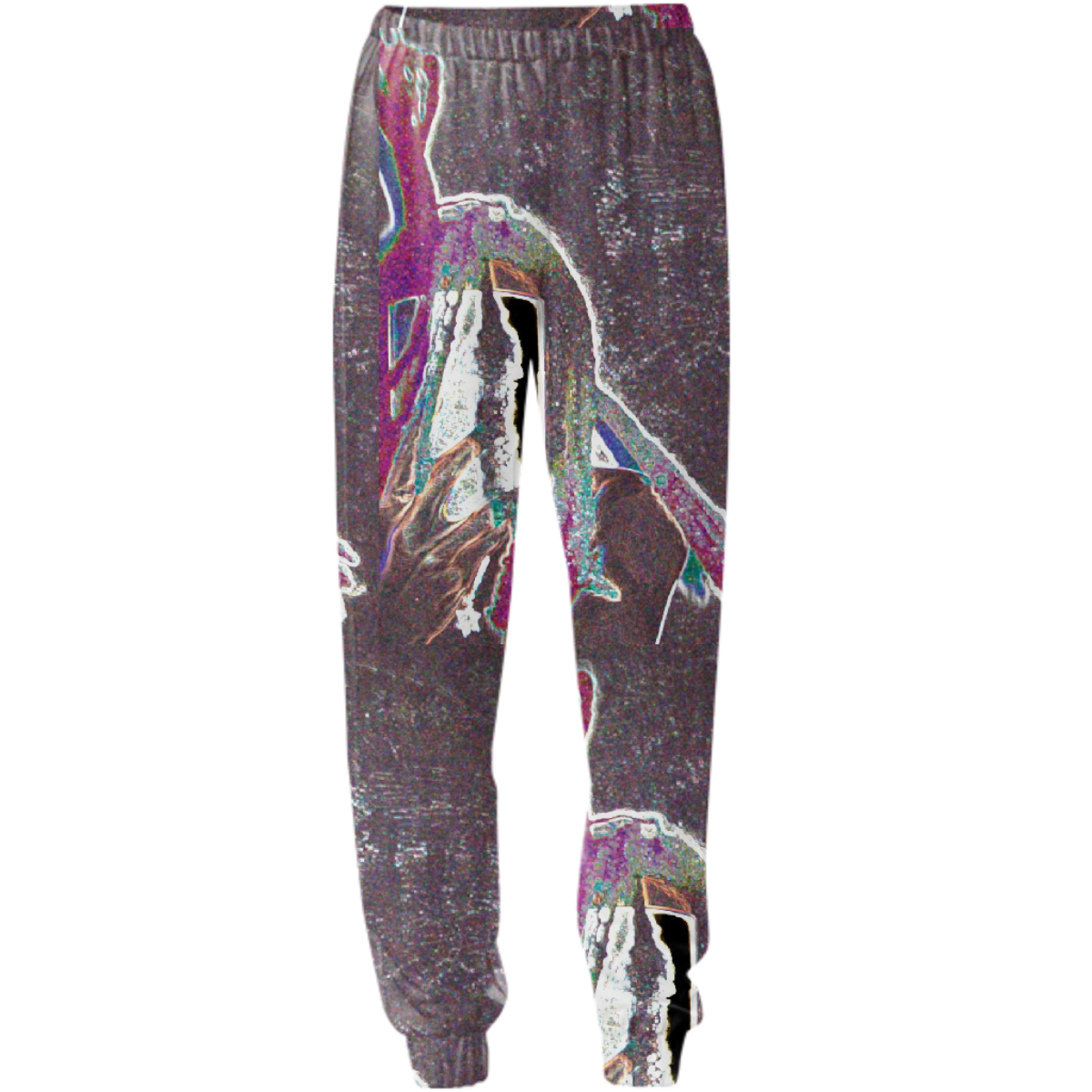Thin jogger fit sweatpants with drawstring elastic waistband side seam pockets and elastic cuffs.