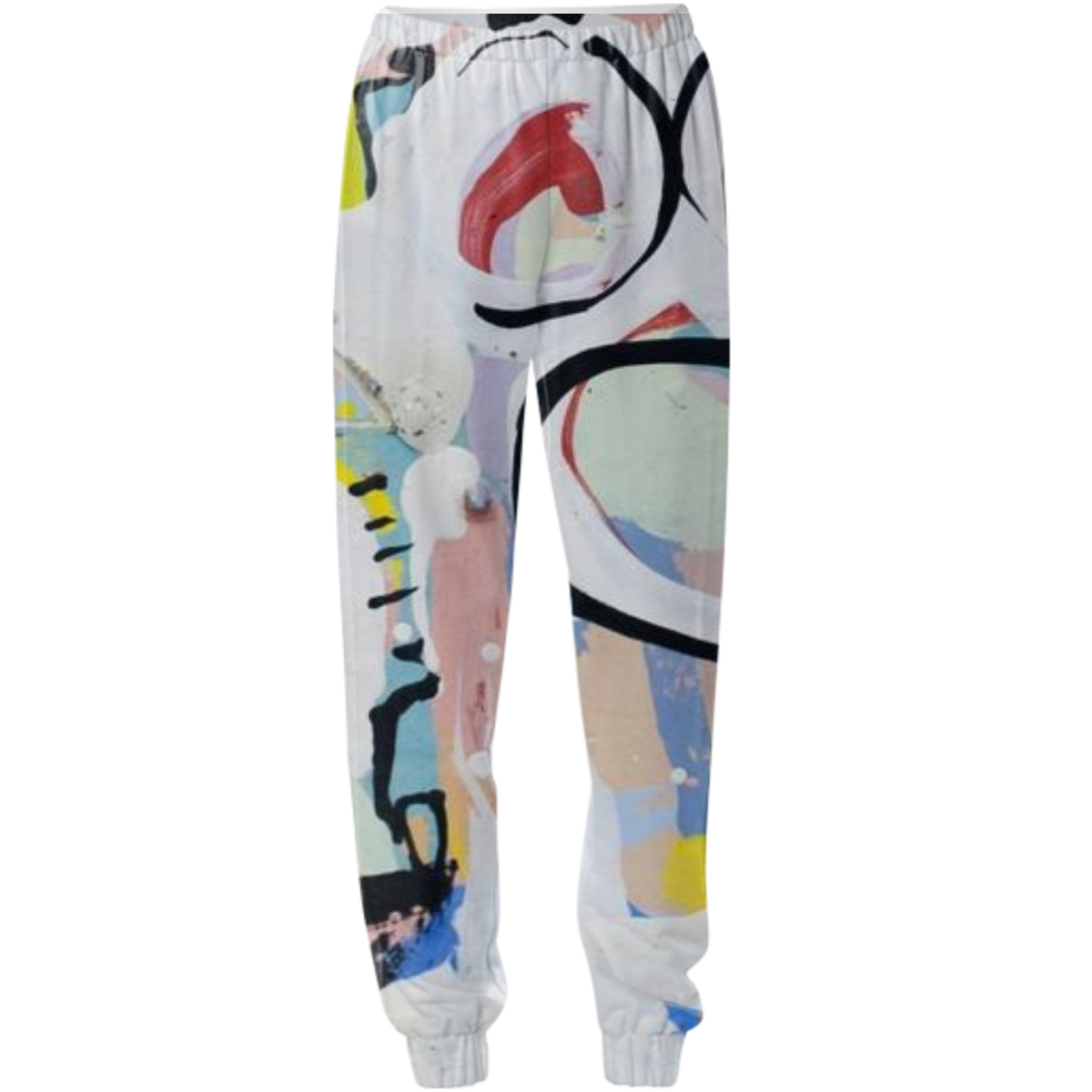 Thin jogger fit sweatpants with drawstring elastic waistband side seam pockets and elastic cuffs.