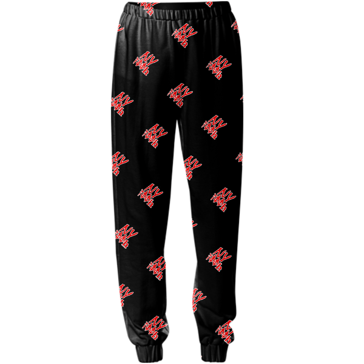 Thin jogger fit sweatpants with drawstring elastic waistband side seam pockets and elastic cuffs.