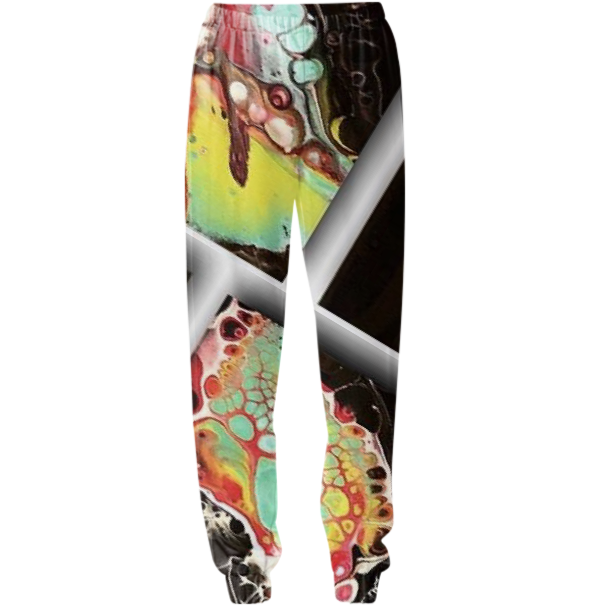 Thin jogger fit sweatpants with drawstring elastic waistband side seam pockets and elastic cuffs.
