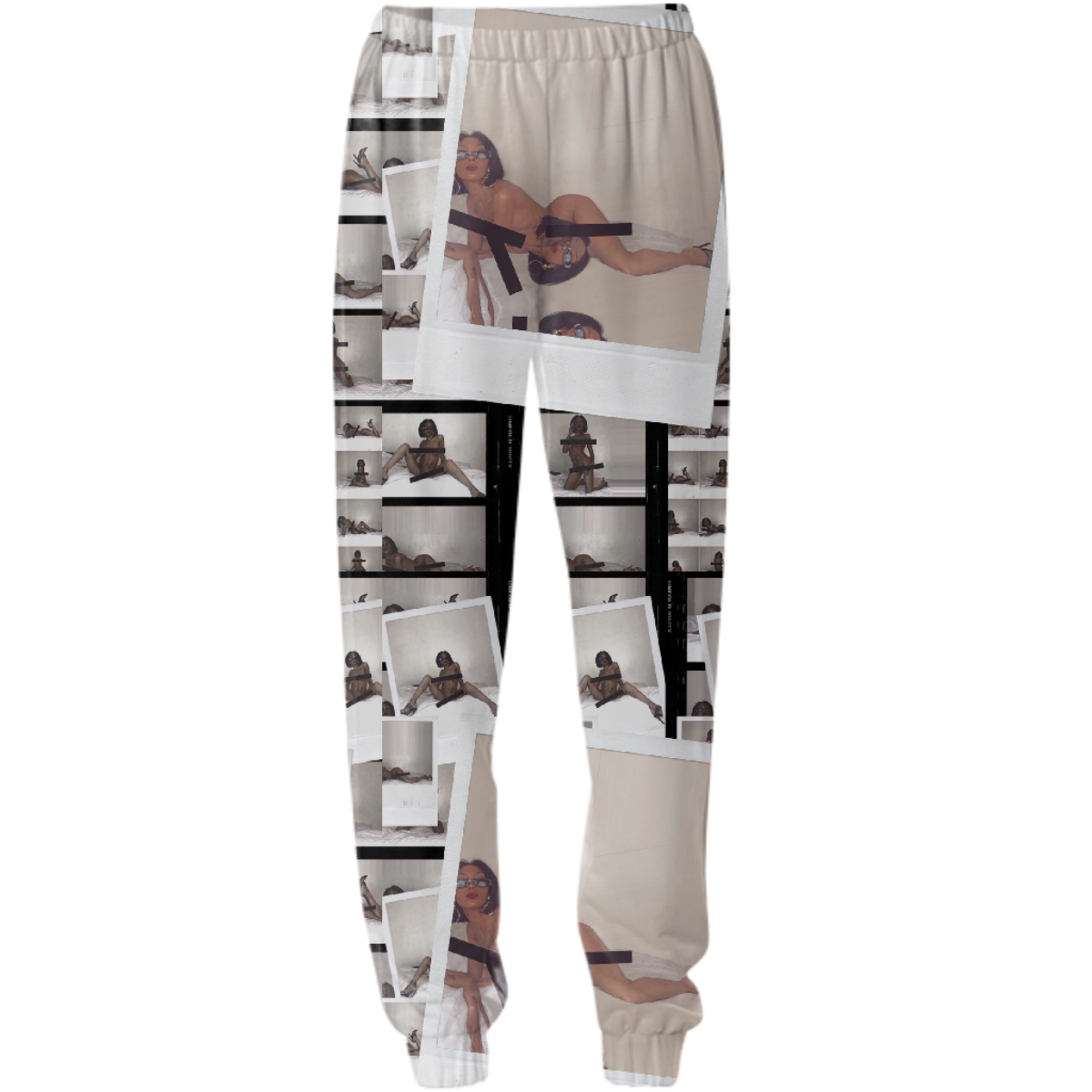 Thin jogger fit sweatpants with drawstring elastic waistband side seam pockets and elastic cuffs.