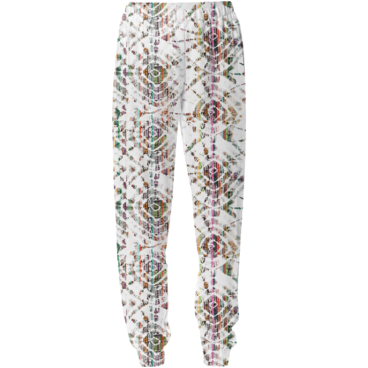 Thin jogger fit sweatpants with drawstring elastic waistband side seam pockets and elastic cuffs.