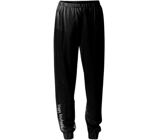 Thin jogger fit sweatpants with drawstring elastic waistband side seam pockets and elastic cuffs.