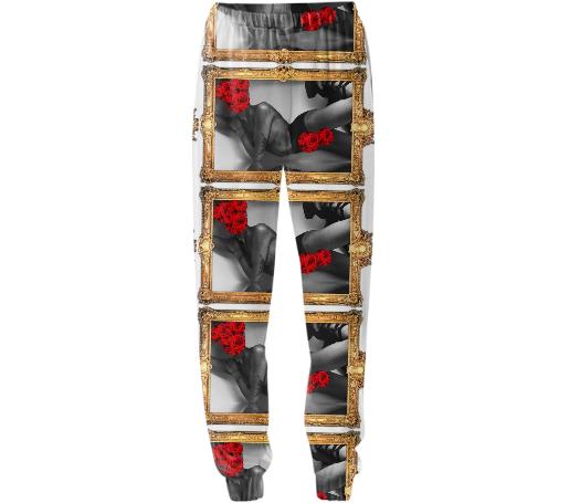 Thin jogger fit sweatpants with drawstring elastic waistband side seam pockets and elastic cuffs.