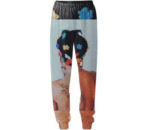 Thin jogger fit sweatpants with drawstring elastic waistband side seam pockets and elastic cuffs.