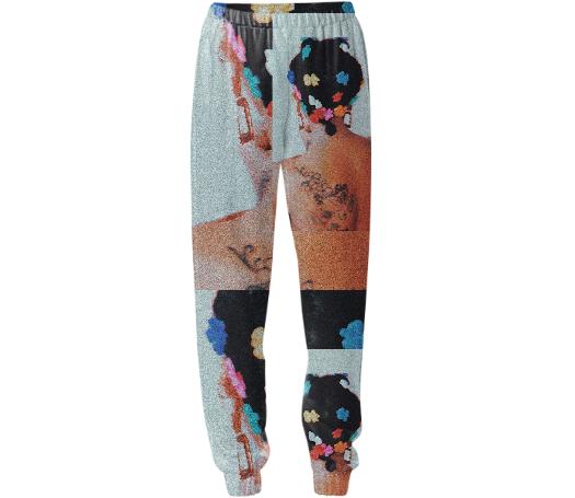 Thin jogger fit sweatpants with drawstring elastic waistband side seam pockets and elastic cuffs.