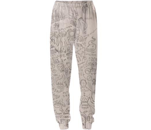 Thin jogger fit sweatpants with drawstring elastic waistband side seam pockets and elastic cuffs.