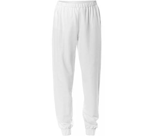 Thin jogger fit sweatpants with drawstring elastic waistband side seam pockets and elastic cuffs.