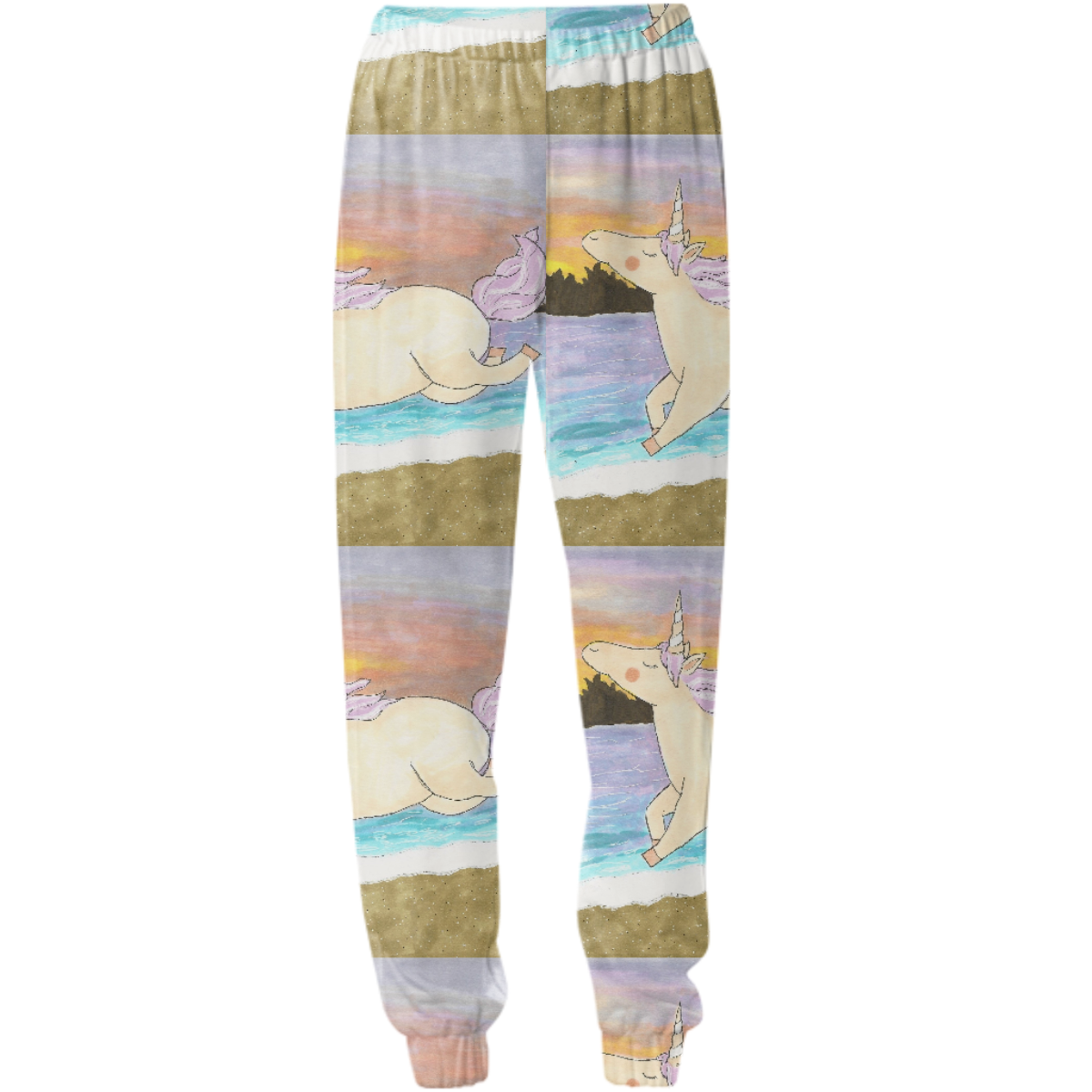 Thin jogger fit sweatpants with drawstring elastic waistband side seam pockets and elastic cuffs.