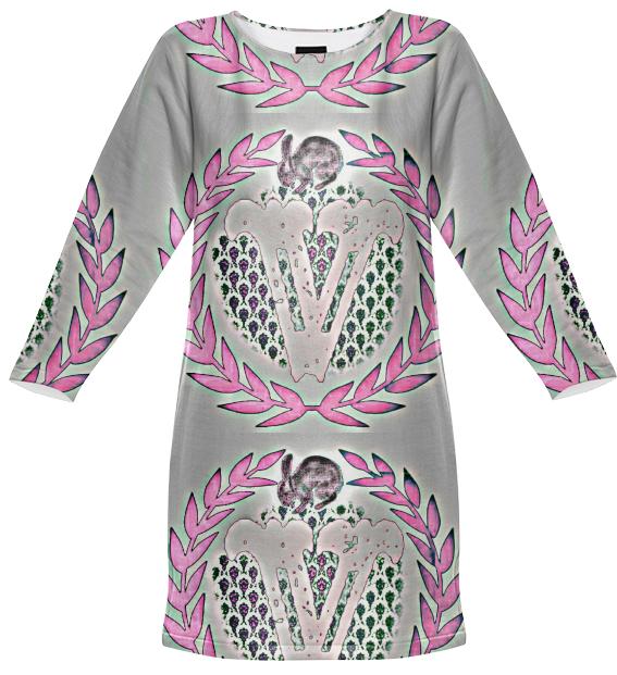 Long sleeve loose fitting sweatshirt dress with side seam pockets.
