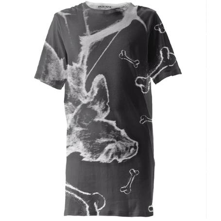 Unisex crew neck tall tee can we work as a long t-shirt or t-shirt dress. Falls at mid thigh.