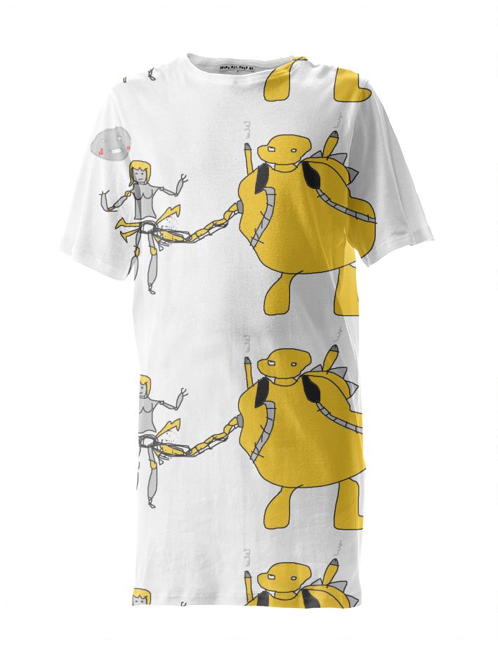 Unisex crew neck tall tee can we work as a long t-shirt or t-shirt dress. Falls at mid thigh.