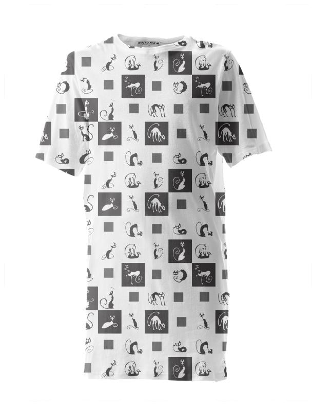 Unisex crew neck tall tee can we work as a long t-shirt or t-shirt dress. Falls at mid thigh.