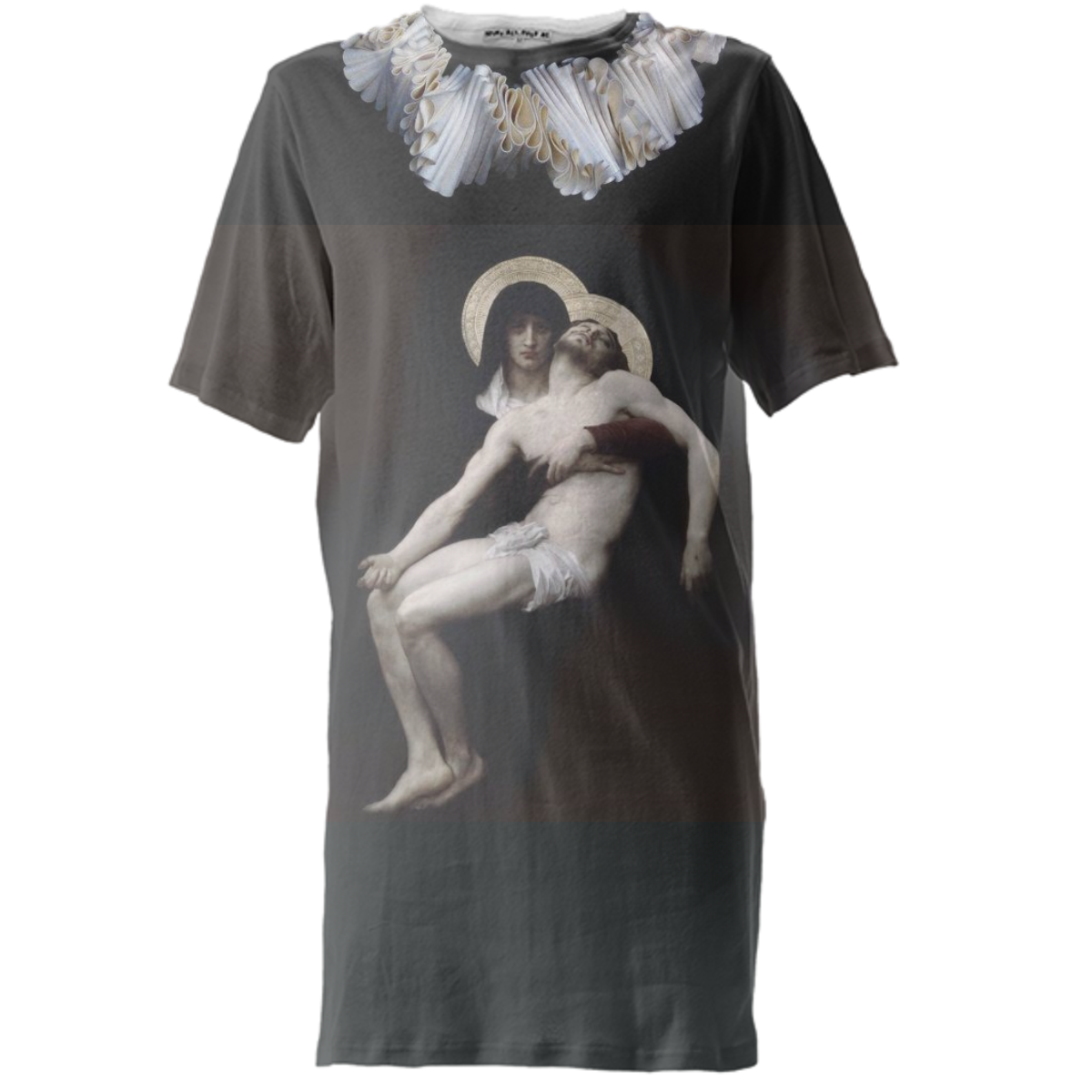 Unisex crew neck tall tee can we work as a long t-shirt or t-shirt dress. Falls at mid thigh.