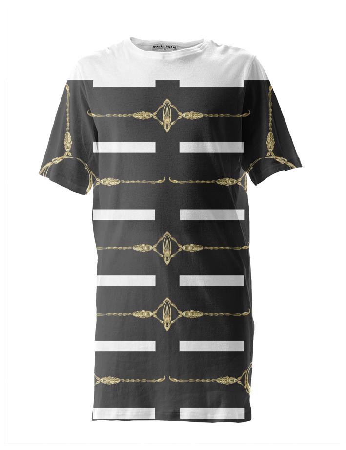 Unisex crew neck tall tee can we work as a long t-shirt or t-shirt dress. Falls at mid thigh.