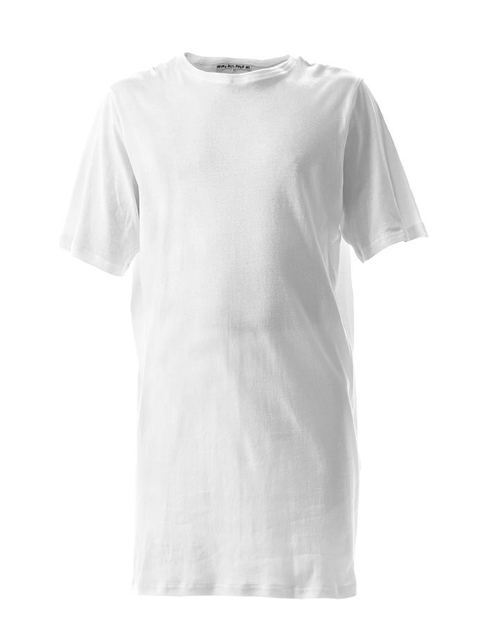 Unisex crew neck tall tee can we work as a long t-shirt or t-shirt dress. Falls at mid thigh.