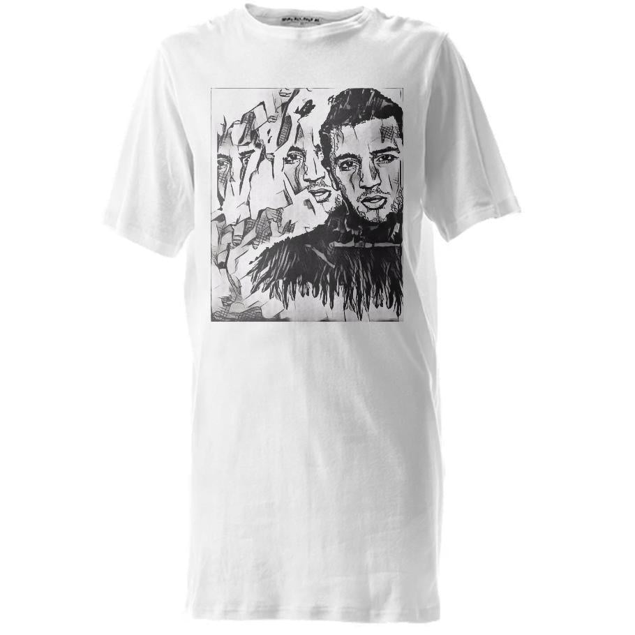 Unisex crew neck tall tee can we work as a long t-shirt or t-shirt dress. Falls at mid thigh.