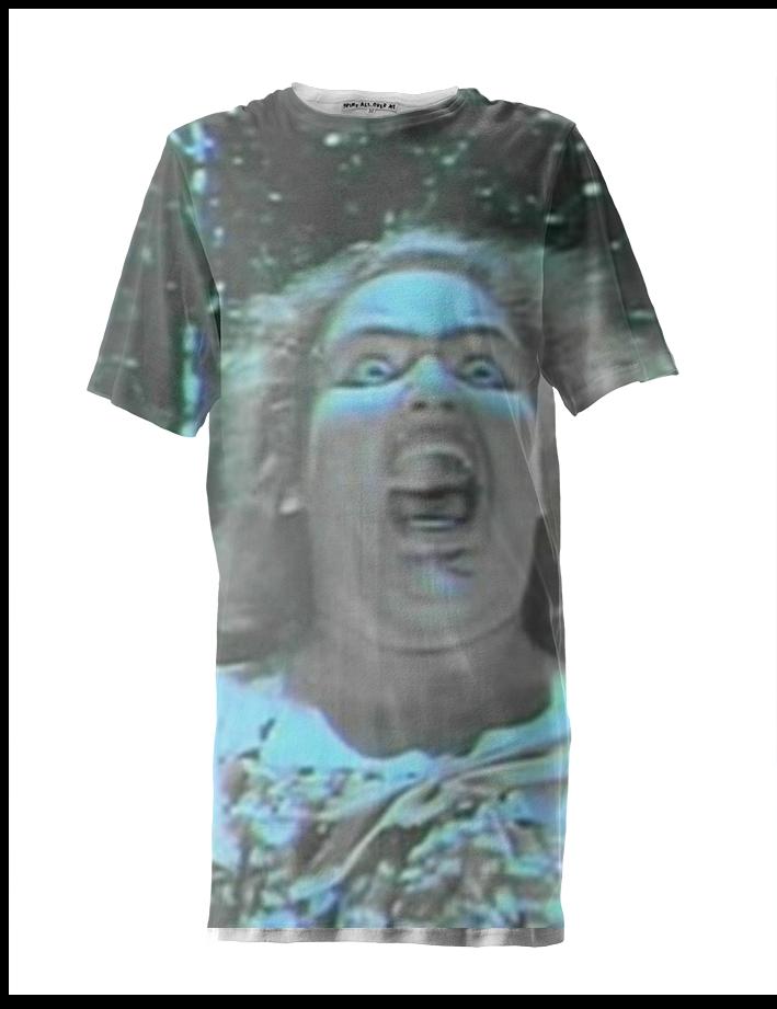 Unisex crew neck tall tee can we work as a long t-shirt or t-shirt dress. Falls at mid thigh.