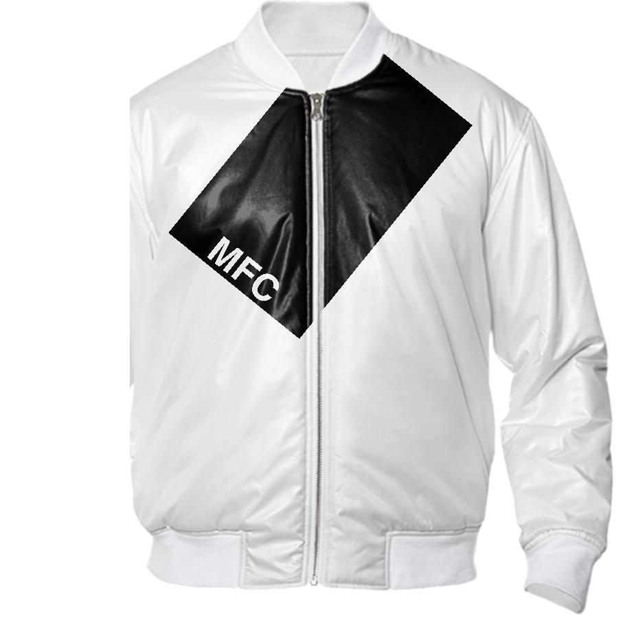 Light weight bombr jacket with your choice of white or black ribbing slight padding zip up front and side pockets. The inside is adorned with PAOM straps for swinging over your shoulders so you dont have to hold it.