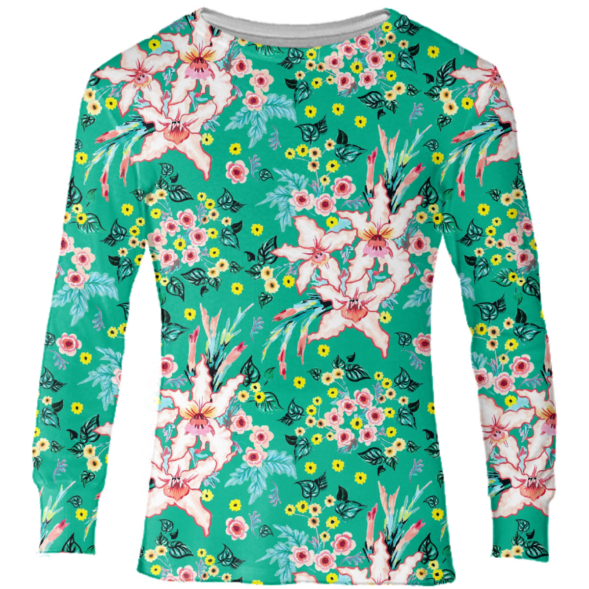 Tropical floral lilies and teal green