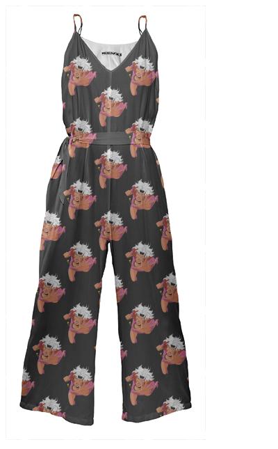 Wide leg jumpsuit with adjustable spaghetti straps invisible side seam zipper and a tie belt.
