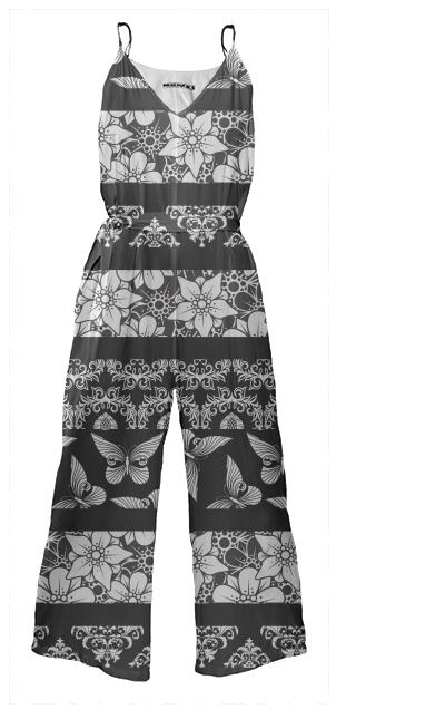 Wide leg jumpsuit with adjustable spaghetti straps invisible side seam zipper and a tie belt.