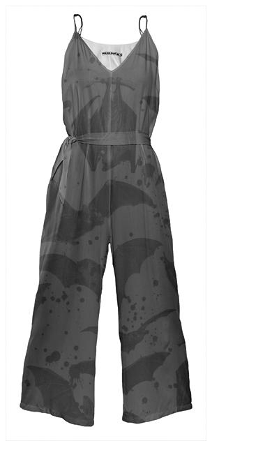Wide leg jumpsuit with adjustable spaghetti straps invisible side seam zipper and a tie belt.