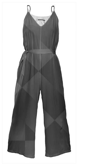 Wide leg jumpsuit with adjustable spaghetti straps invisible side seam zipper and a tie belt.
