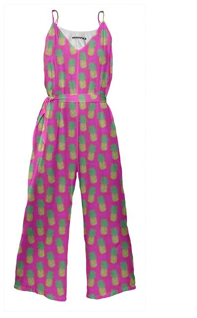 Wide leg jumpsuit with adjustable spaghetti straps invisible side seam zipper and a tie belt.