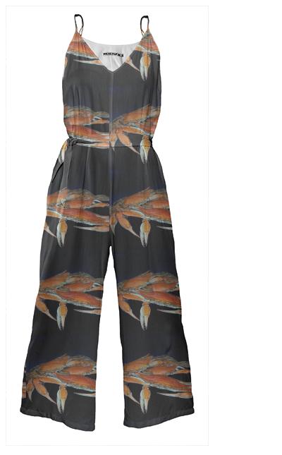Wide leg jumpsuit with adjustable spaghetti straps invisible side seam zipper and a tie belt.