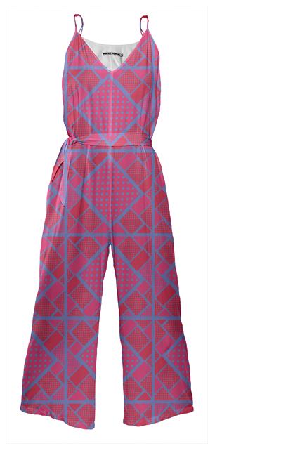 Wide leg jumpsuit with adjustable spaghetti straps invisible side seam zipper and a tie belt.