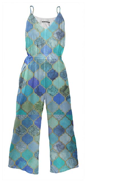 Wide leg jumpsuit with adjustable spaghetti straps invisible side seam zipper and a tie belt.