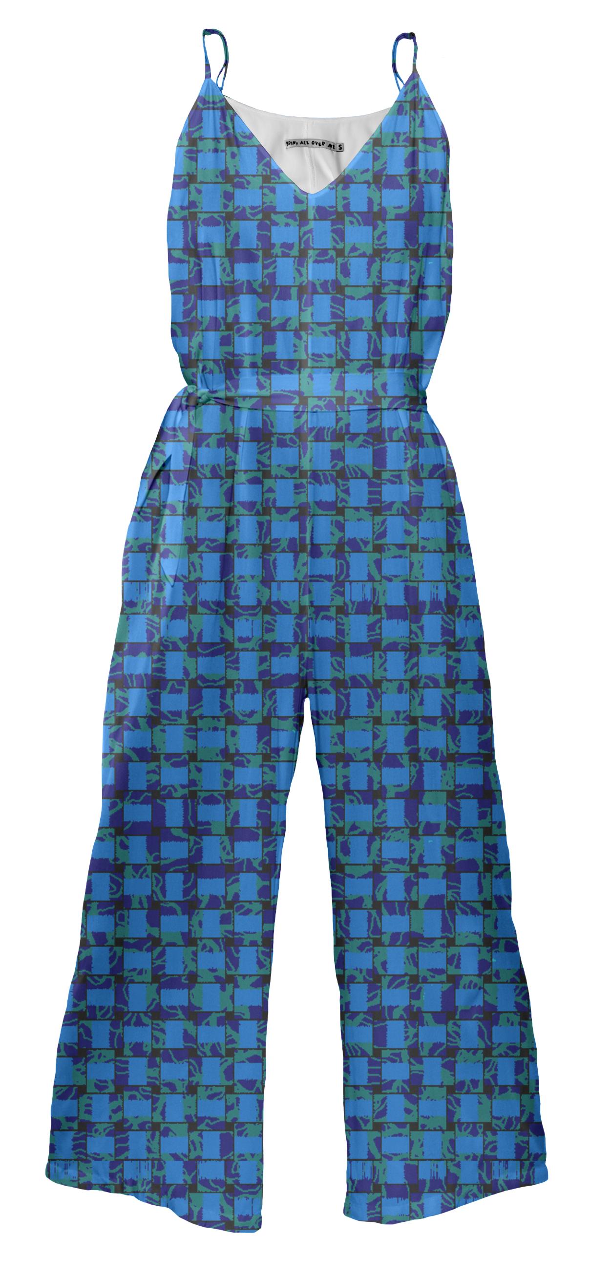 Wide leg jumpsuit with adjustable spaghetti straps invisible side seam zipper and a tie belt.