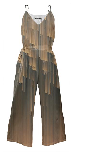 Wide leg jumpsuit with adjustable spaghetti straps invisible side seam zipper and a tie belt.