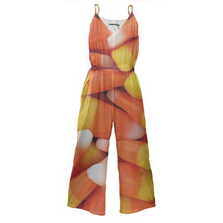 Wide leg jumpsuit with adjustable spaghetti straps invisible side seam zipper and a tie belt.