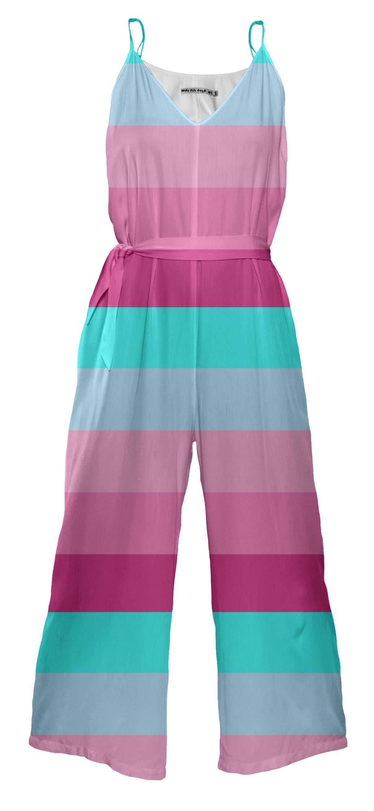 Wide leg jumpsuit with adjustable spaghetti straps invisible side seam zipper and a tie belt.