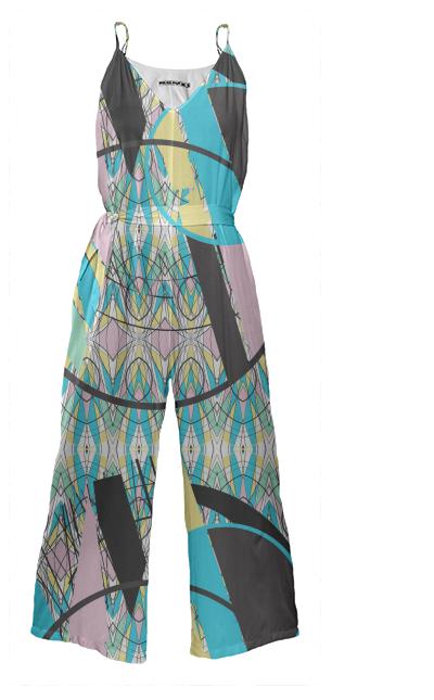 Wide leg jumpsuit with adjustable spaghetti straps invisible side seam zipper and a tie belt.