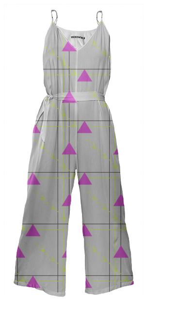 Wide leg jumpsuit with adjustable spaghetti straps invisible side seam zipper and a tie belt.