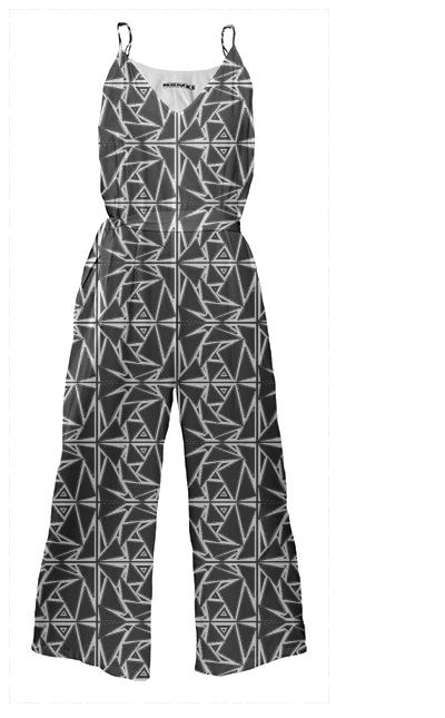 Wide leg jumpsuit with adjustable spaghetti straps invisible side seam zipper and a tie belt.