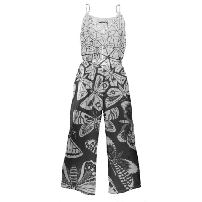 Wide leg jumpsuit with adjustable spaghetti straps invisible side seam zipper and a tie belt.
