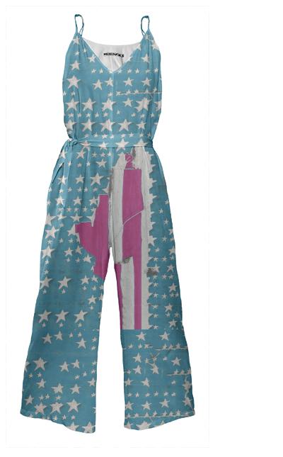 Wide leg jumpsuit with adjustable spaghetti straps invisible side seam zipper and a tie belt.