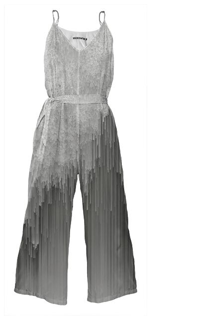 Wide leg jumpsuit with adjustable spaghetti straps invisible side seam zipper and a tie belt.