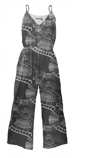 Wide leg jumpsuit with adjustable spaghetti straps invisible side seam zipper and a tie belt.