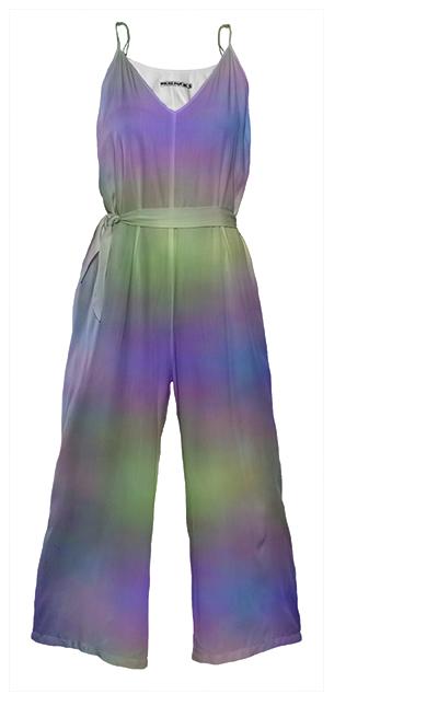 Wide leg jumpsuit with adjustable spaghetti straps invisible side seam zipper and a tie belt.